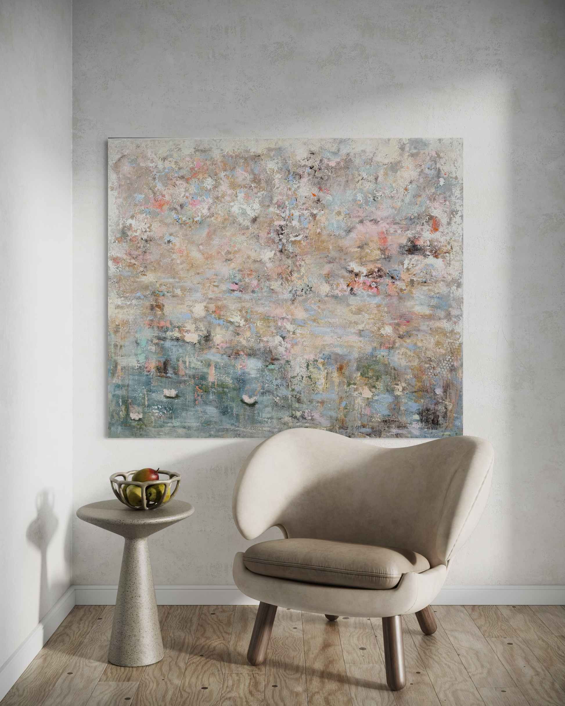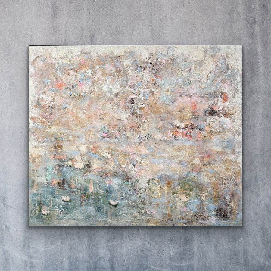 Den här målningen kom till som en längtan. Efter stillhet. Efter värme. Efter en värld där vi är snälla – både mot oss själva och varandra.